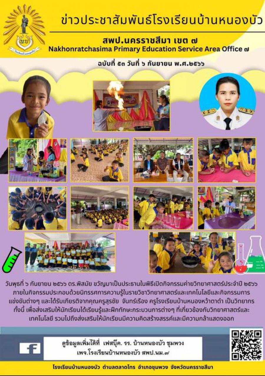 โรงเรียนบ้านหนองบัว จัดกิจกรรมค่ายวิทยาศาสตร์ประจำปี ๒๕๖๖
