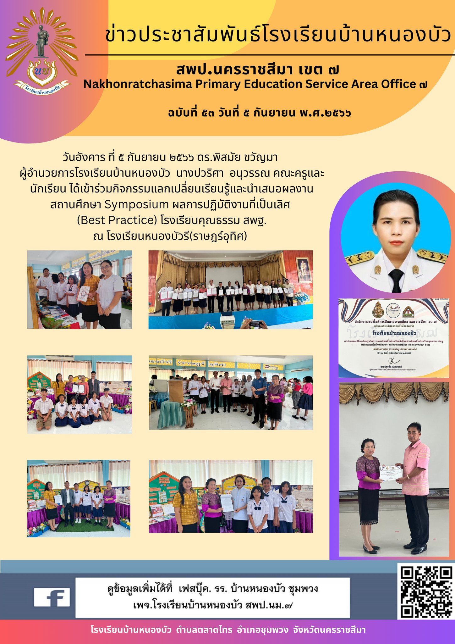 โรงเรียนบ้านหนองบัวเข้าร่วมกิจกรรมแลกเปลี่ยนเรียนรู้และนำเสนอผลงานสถานศึกษา Symposium ผลการปฏิบัติงานที่เป็นเลิศ (Best Practice) โรงเรียนคุณธรรม สพฐ. ณ โรงเรียนหนองบัวรี(ราษฎร์อุทิศ)